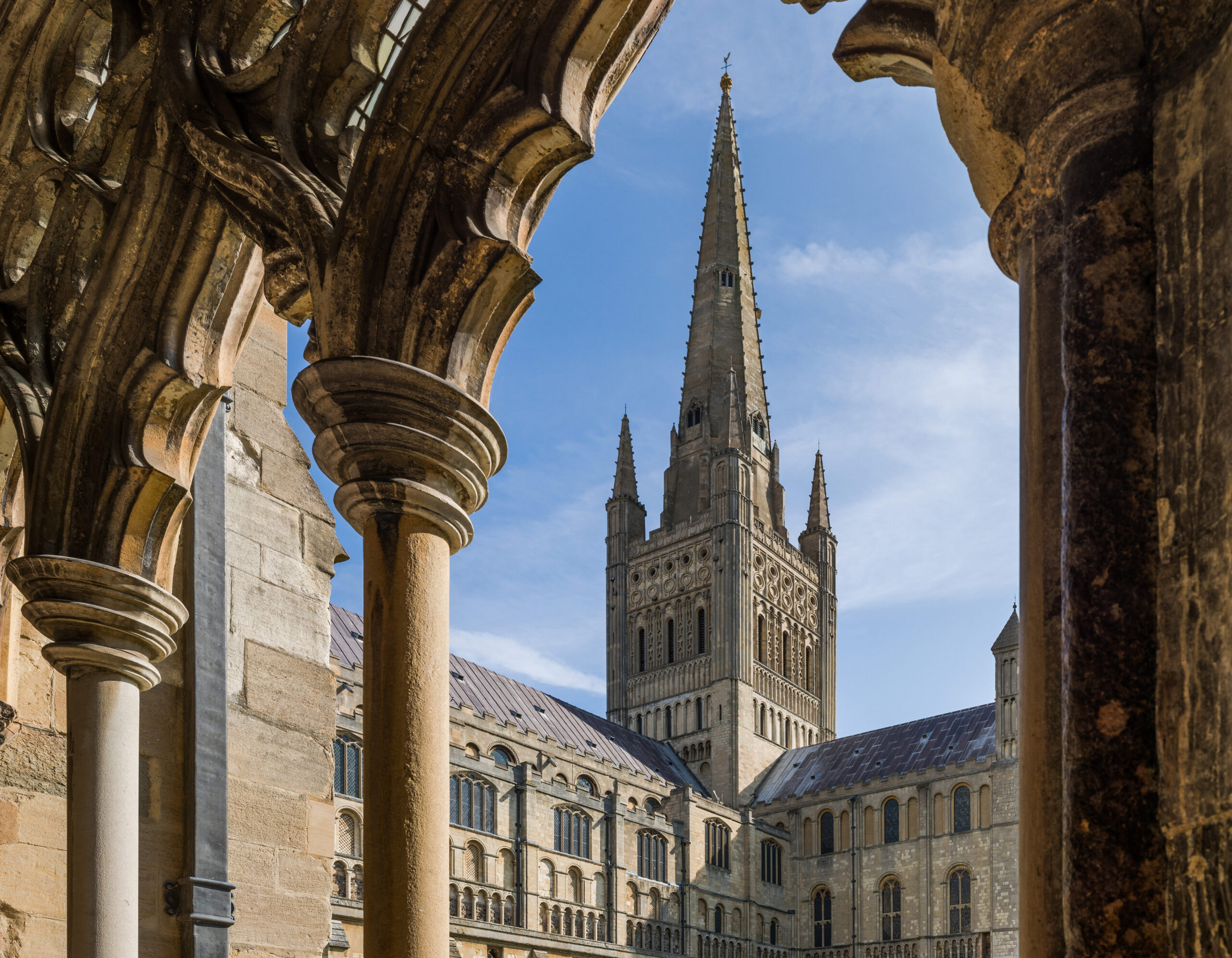 Photo: The spire of Norwich Cathedral, where Jayne bought her first copy of New Daylight. Photo by David Iliff, license: CC BY-SA 3.0, via Wikimedia Commons. Cropped.