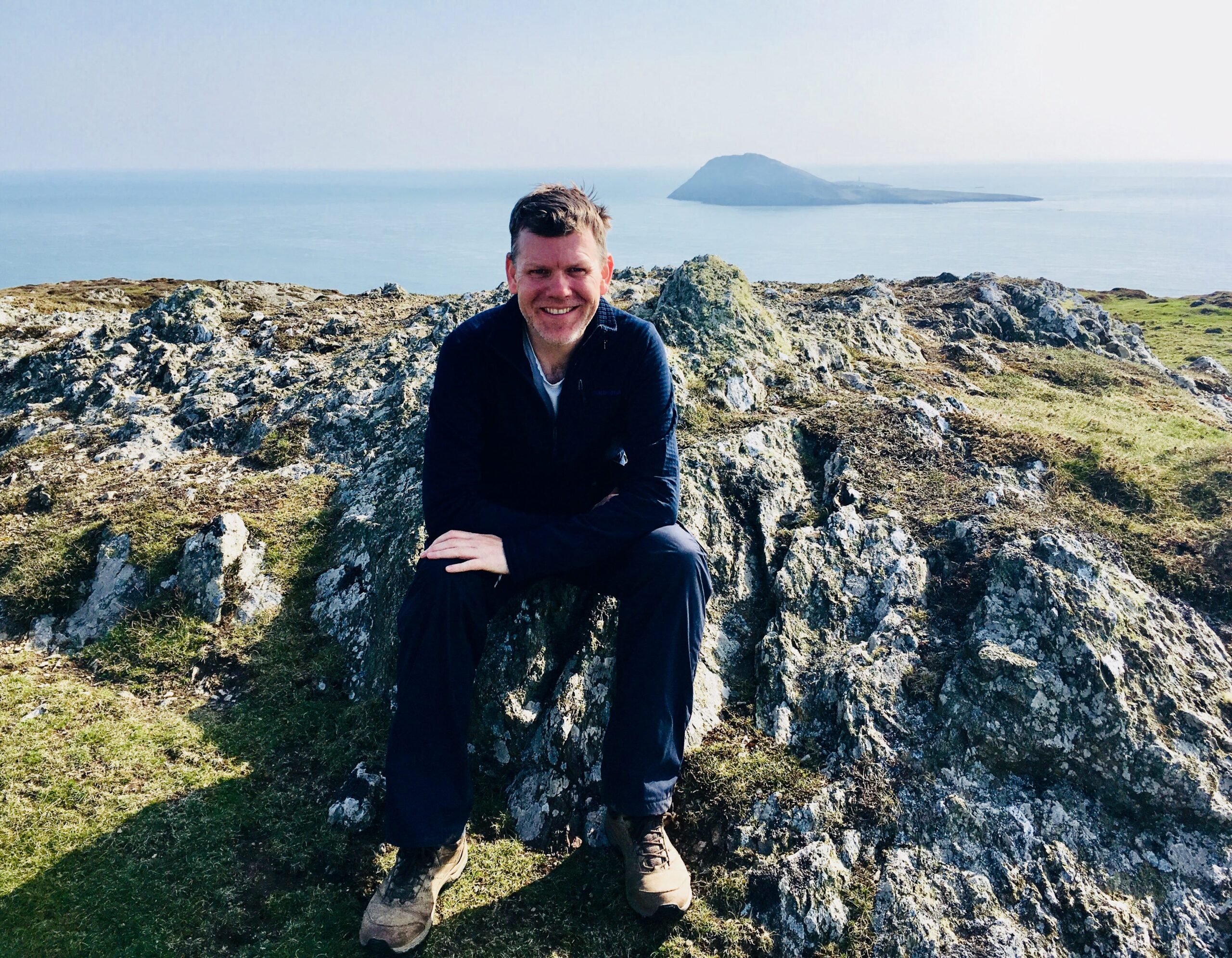 The Pilgrim’s Way in North Wales was a path I had longed to tread for many years. As a teenager I was obsessed with surfing. Growing up on the North Wales coast, my favourite surf spot was the breathtaking four-mile sandy bay called Porth Neigwl, located on the far western tip of North Wales, at the end of the Llŷn Peninsula. I would camp with a friend at the top of the cliff, waking early to clamber down to hit the huge waves that would pound the shore. The English name for the bay is Hell’s Mouth, as it appears as an ominous orifice and has been, historically, a place of great danger to sailors during storms. After an exhilarating day’s surfing, my friend and I would then drive up to the top of the not-so-imaginatively named Mynydd Mawr (Big Mountain) to watch the sun setting on the beautiful Ynys Enlli (Bardsey Island).