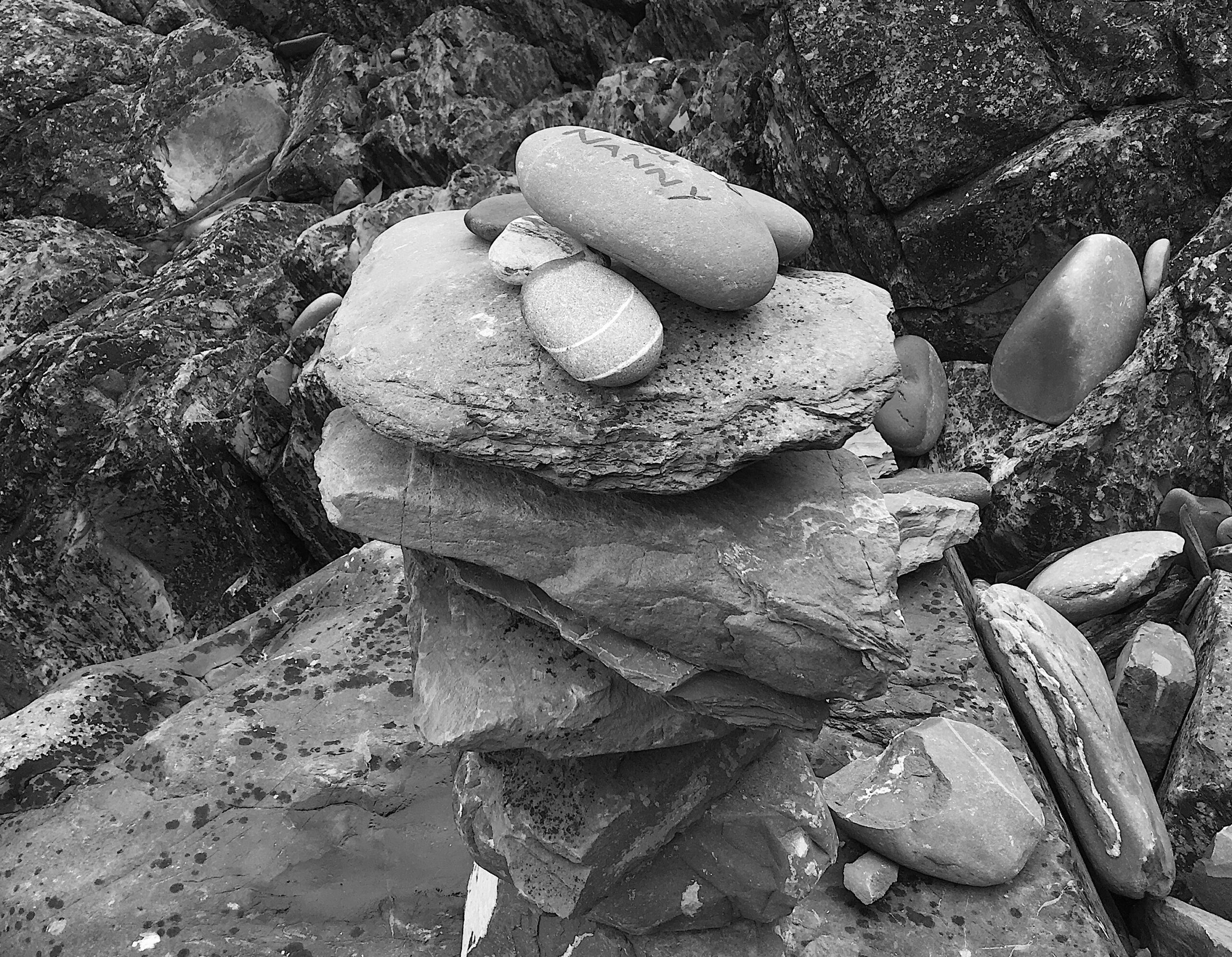 Right: a pile of stones near Ninian’s cave